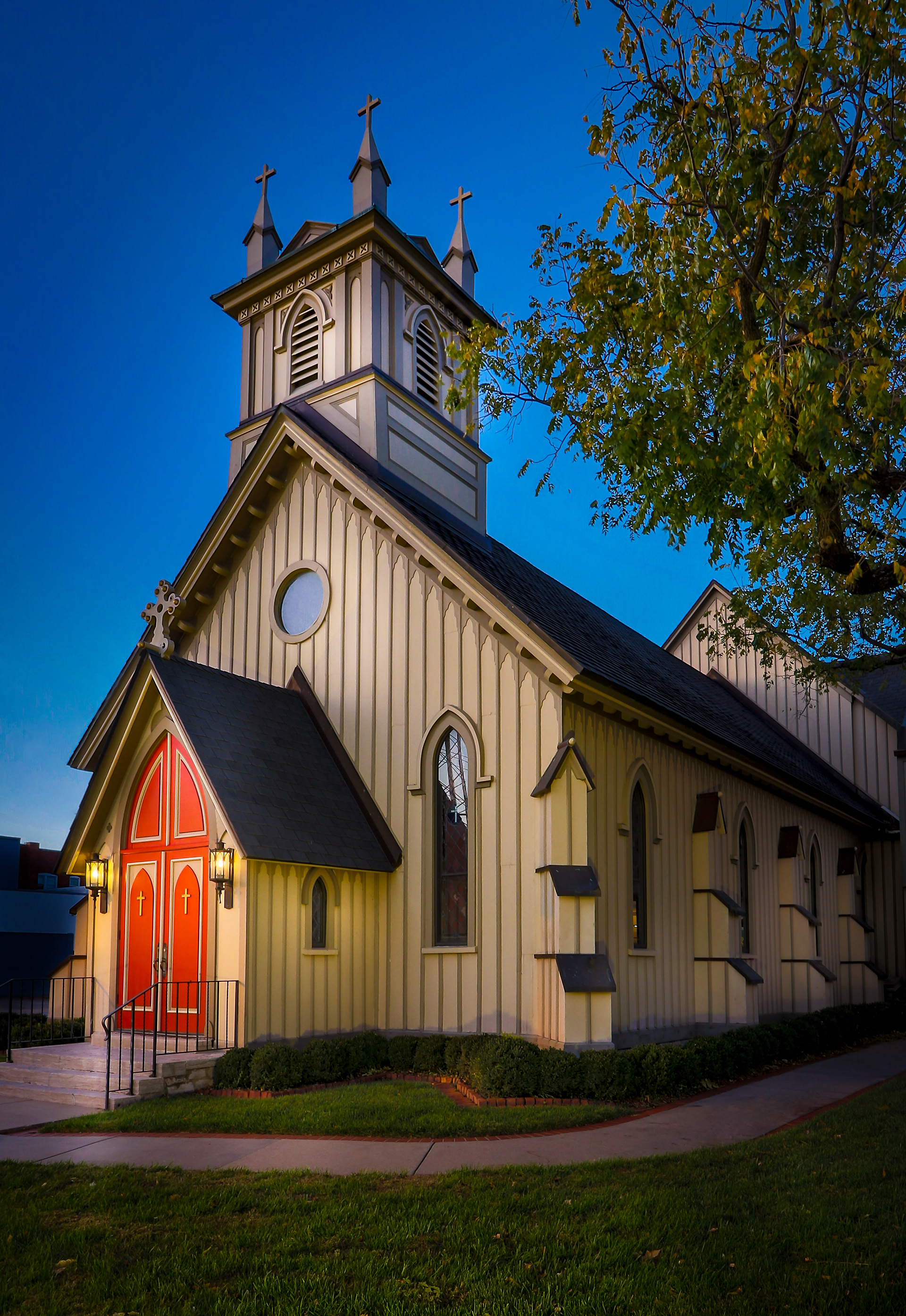 Architecture of interiors and exteriors of churches in St. Louis and Springfield Missouri, and Quincy Illinois